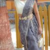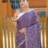 Drape yourself in luxury with this Pure Soft Silk Saree, exquisitely adorned with beautiful thread handwork. It showcases an elegant floral design complemented by a sophisticated cutwork border, creating a harmonious and graceful look. The saree features this elegant design meticulously spread all over, ensuring a stunning appearance. This timeless piece, perfect for any special occasion, is available for ₹4,899.00.